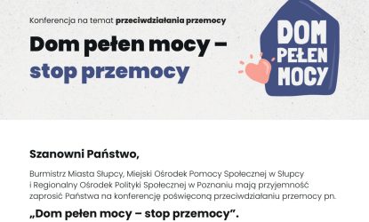 Wydarzenia Zaproszenie na konferencję „Dom pełen mocy – stop przemocy”w imieniu Burmistrza Miasta Słupcy, Miejskiego Ośrodka Pomocy Społecznej w Słupcy oraz Regionalnego Ośrodka Polityki Społecznej w Poznaniu mamy zaszczyt … 23 kwietnia 2026